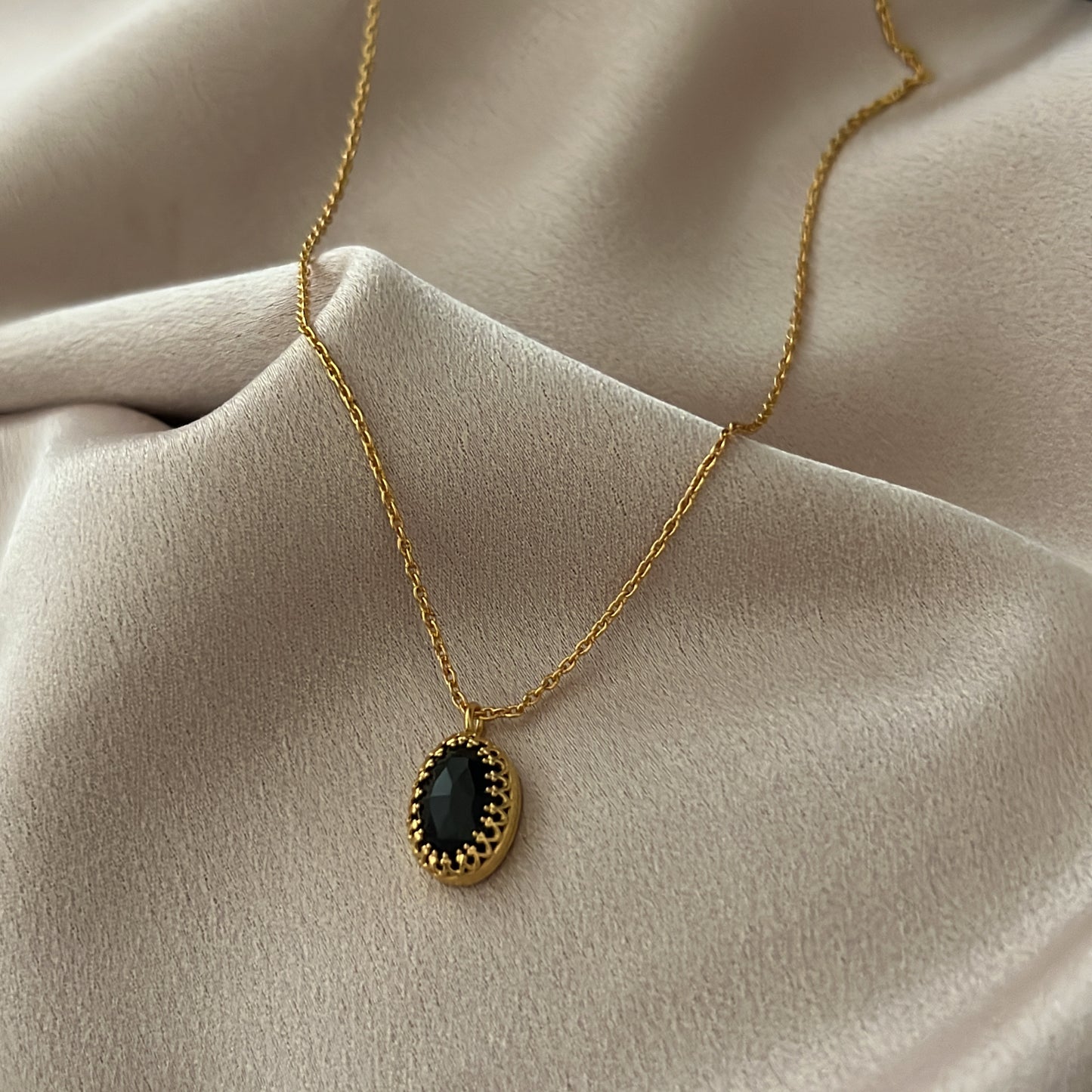 Artisan piece handcrafted in 18K Gold Plated Brass with Black Onyx Rose Cut Oval