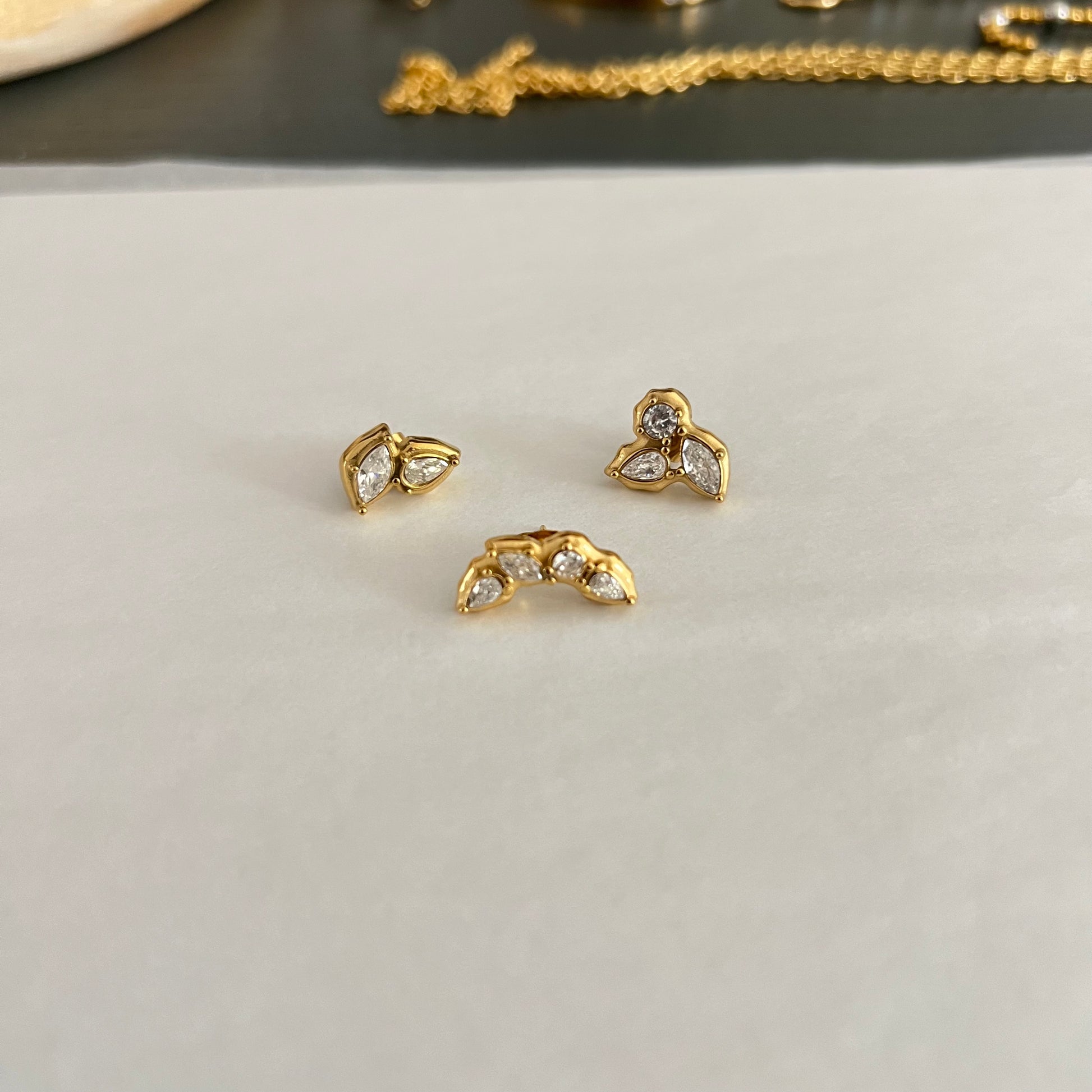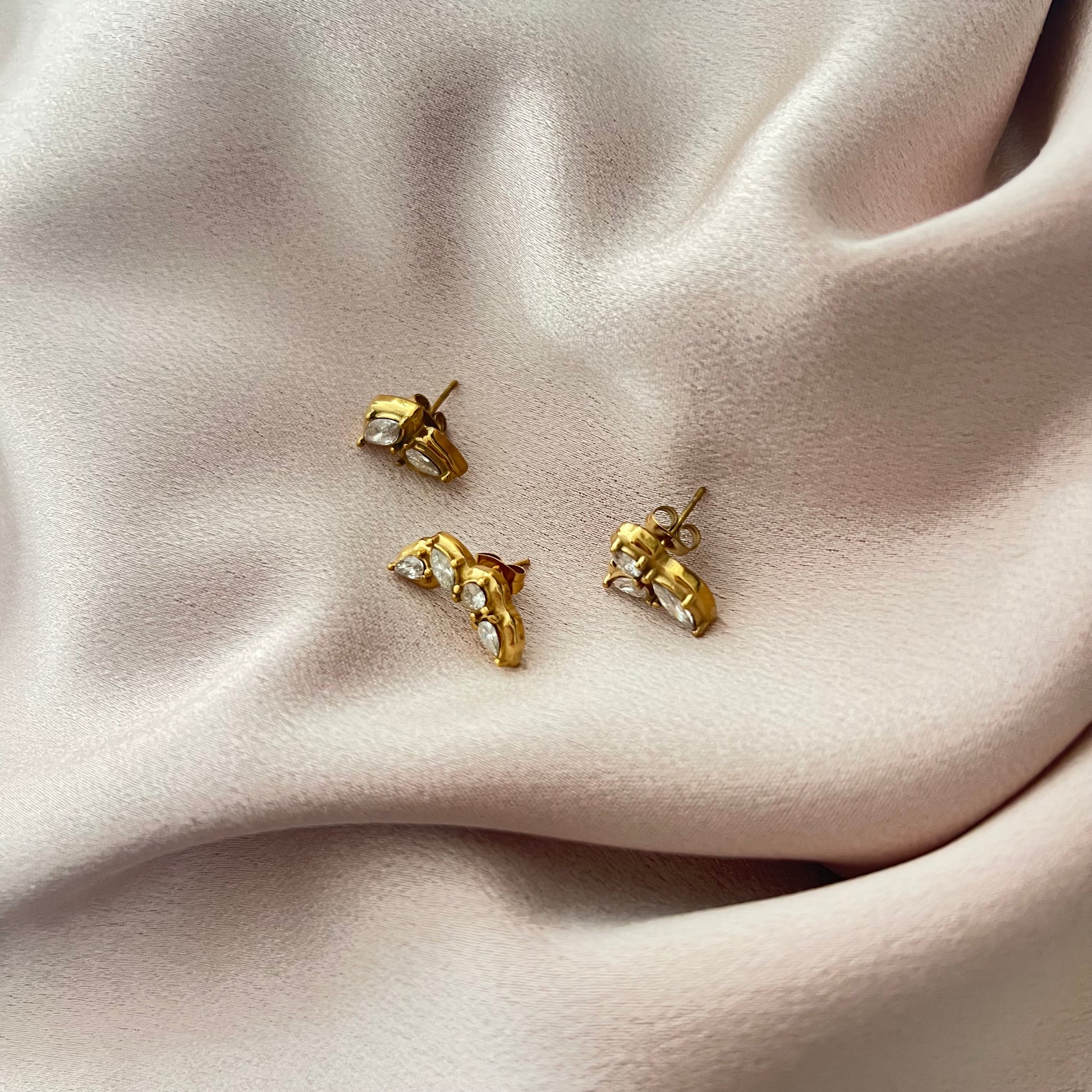 A trio of timeless sparkle — this set of 3 gold cluster earrings brings effortless elegance to every occasion. Each pair features a unique arrangement of marquise and round-cut crystals, beautifully set in polished gold-tone stainless steel for a luminous finish.